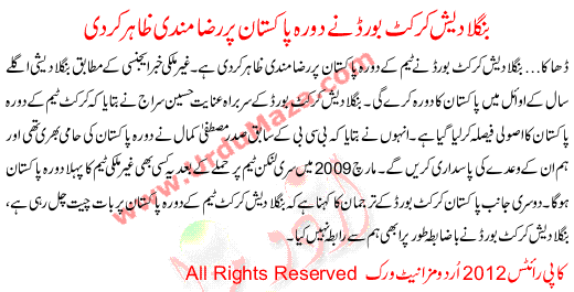 Bangla Deshi Cricket Board Ne Dora Pakstan Per Razamandi Zaher Kare Di