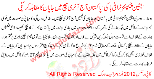Pakistani Team Aaj Aakhri Match Me Japan Ka Muqabnla Kare Gi Acth