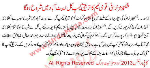 Cricket Team Starts Training At Abbottabad From Tomorrow