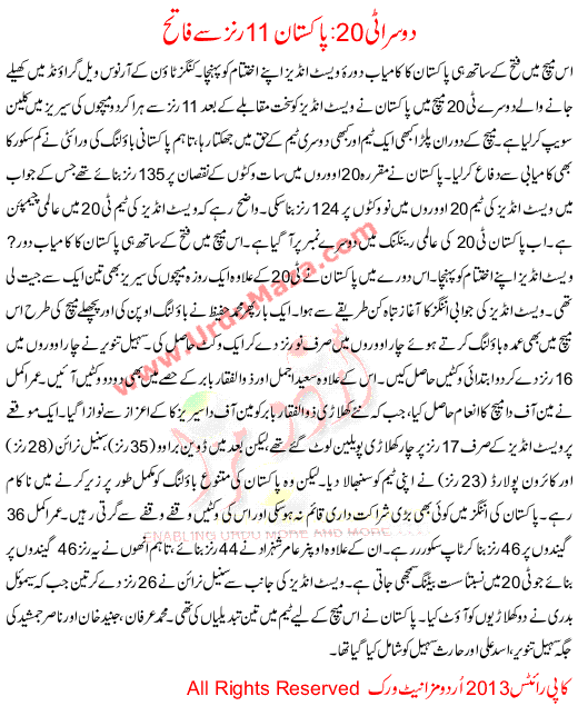 Pak Beat Wi By 11 Runs In Second T20 To Win Series 2-0