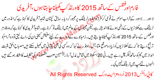 Farm Or Fitness K Sath 2015 Ka World Cup Khelna Chahta Ho Afridi