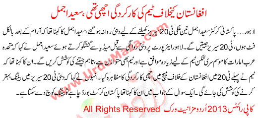 Saeed Ajmal Was The Team's Performance Against Afghanistan