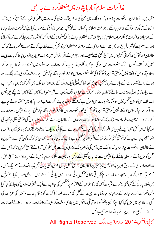 To Hold Talks In Islamabad Or Peshawar Siraj Ul Haq