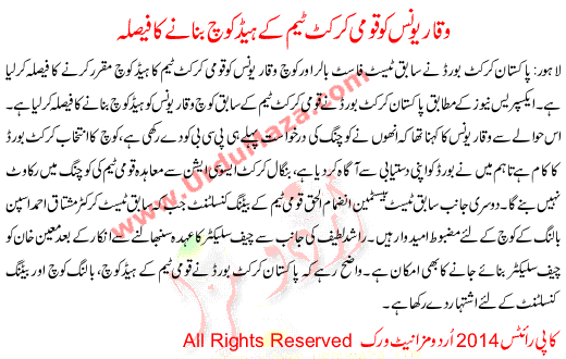 Waqar Younus Is The Head Coach Of National Cricket Team