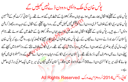 Younas Khan Return Country And Will Not Played 2 Odi