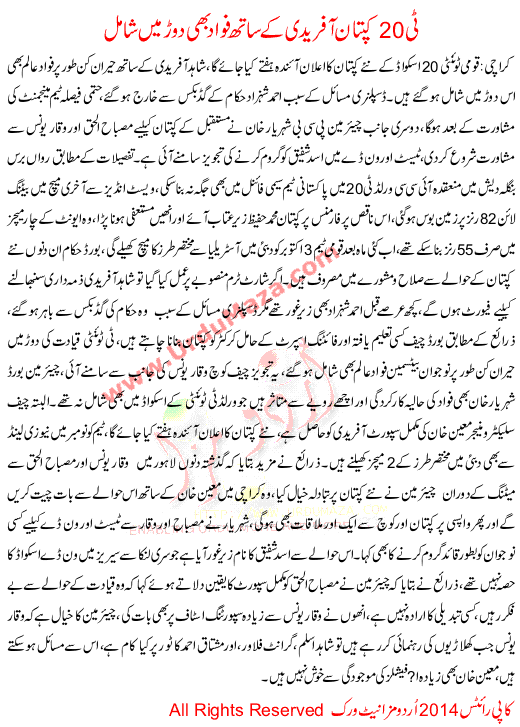 Afridi And Fawad Compete T 20 Capten