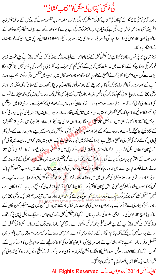 Cricket T2o Captain On Tuesday Unveiled