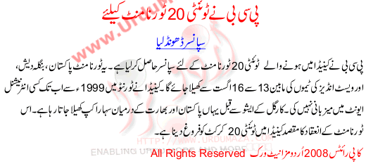 Pakistan Cricket Board Got The Sponsor For 20 20 Cricket Championship Starting In August In Canada Between Pak, Ban , Wi