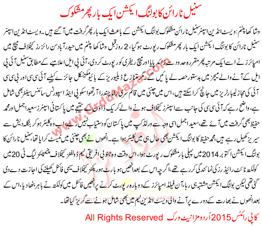 Once Again Suspicious Bowling Action Of Sunil Narine