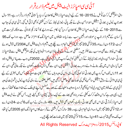 Elite Panel Of Icc Umpires Aleem Dar Intact