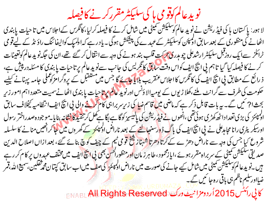 Nveed Alam Selected New Selector Of National Hockey Team