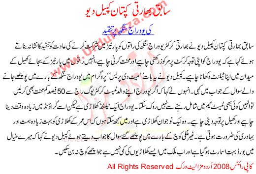 Formar Indian Cricket Team Captain And Legend Kapil Dev Criticises Yuvraj Singh To Work Harder To His Game