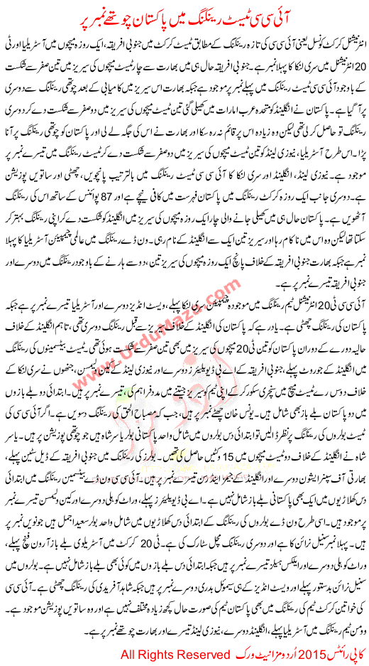 Pakistan Ranked Fourth In The Icc Test Rankings