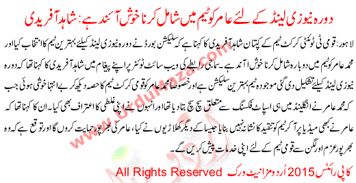 Amir Include Team For Newze Land Trip Is Goof Afridi
