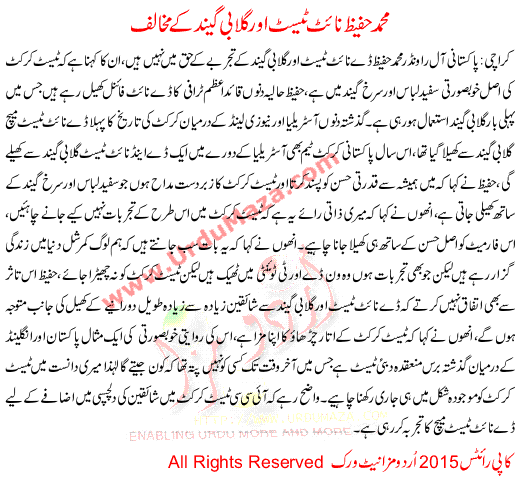 Mohammad Hafeez Against Night Test And Pink Ball