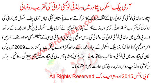 Army Public School In Peshawar World Twenty20 Trophy Launching Ceremony