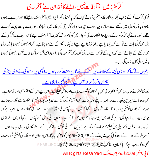Crickters Ma Ikhtlafat Nahi,rabtay Ka Fukdan Ha