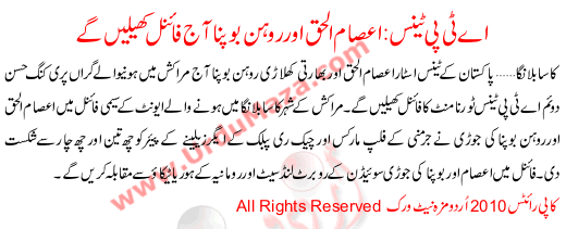 Atp Tennis Asan Ul Haq Or Rohan Aj Final Khelen Ga