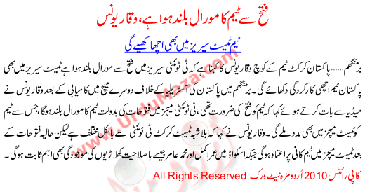 Fatah Sa Team Ka Moral Buland Hoa Ha Waqar Younas