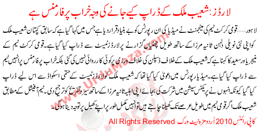 Shoaib Malik K Drop Kiay Janay Ki Wajah Khrab Performance Ha