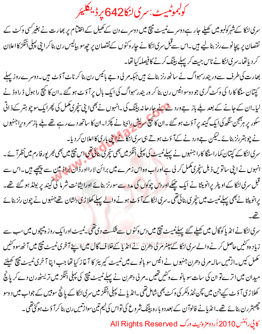 Kolombo Test Sri Lanka 642 Per Declare