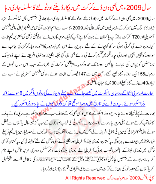 Many New Records Were Made And Old Records Were Broken In The Year 2009 Of Cricket World