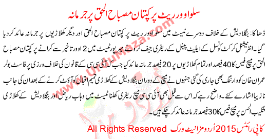 Captain Misbah Ul Haq Fined For Slow Over Rate
