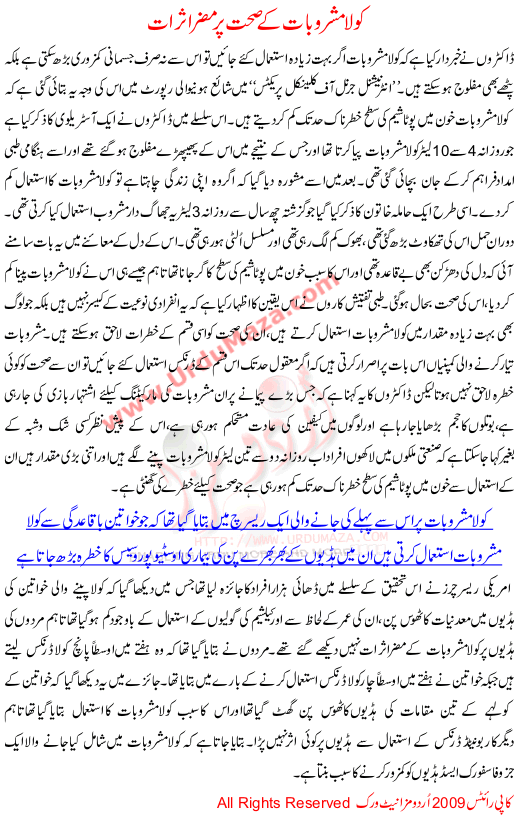 Cola Mashroobaat Kay Sehat Per Mozar Asraat