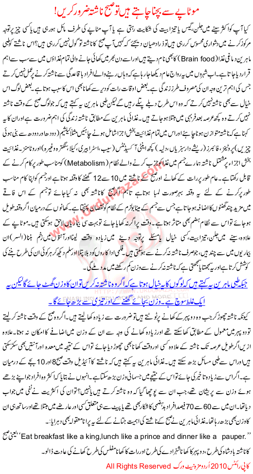 Motape Say Bachna Chahte Hai To Nashta Zror Karen