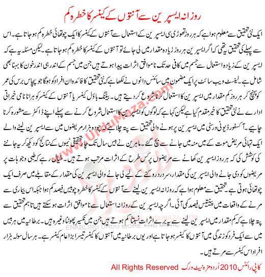 Rozana Espreen Say Anto K Canser Ka Khatra Kam