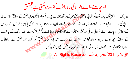 Uncha Sunne Wale Afrad Ki Yadascht Kamzor Ho Sakti Hai