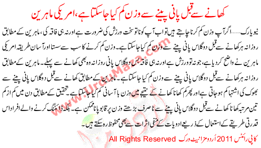 Khanay Sa Qabal Pani Peenay Sa Wazan Cum Kiya Ja Skta Ha