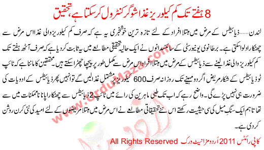 8 Haftay Tk Cum Keloreez Ghaza Shugar Control Kr Skta Ha