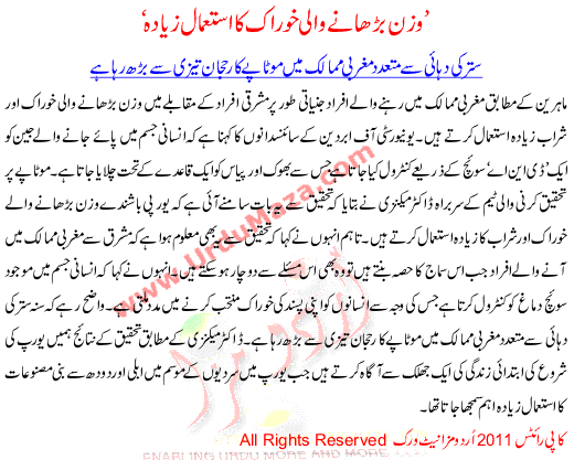 Wazan Barhanay Wali Khoorak Ka Istmaal Zyada