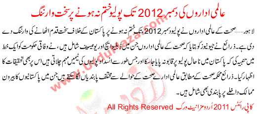 Aalmi Idaro Ki December 2012 Tak Polyo Khatam Na Hone Per Sakht Warning
