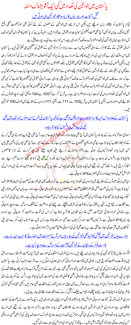 Pakistan Ma Orton Ki Tadad Ma Kami Aik Tashweeshnak Masla