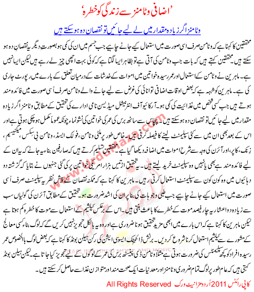 Izafi Vitamin Sa Zindge Ko Khatra