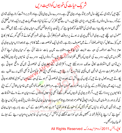 Shareek E Hayat Ki Khoobion Ko Ahmiat Dain