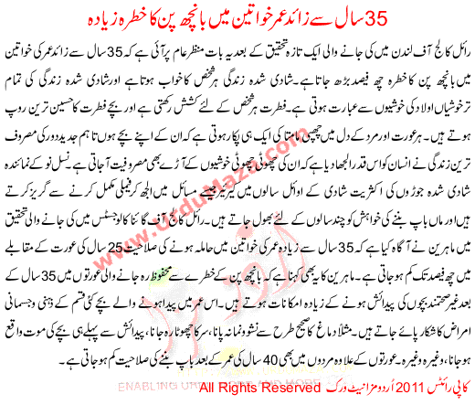 35 Saal Sa Zaid Umer Khwateen Ma Banch Pan Ka Khatra Zyada