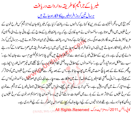 Maleria K Jaraseem Ka Tareeka Wardat Daryaft
