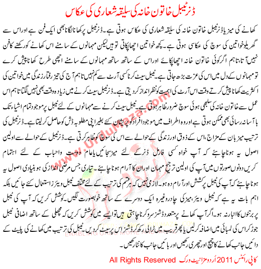 Dinner Table Khatoon Khana Ki Saleeka Shyari Ki Akaas