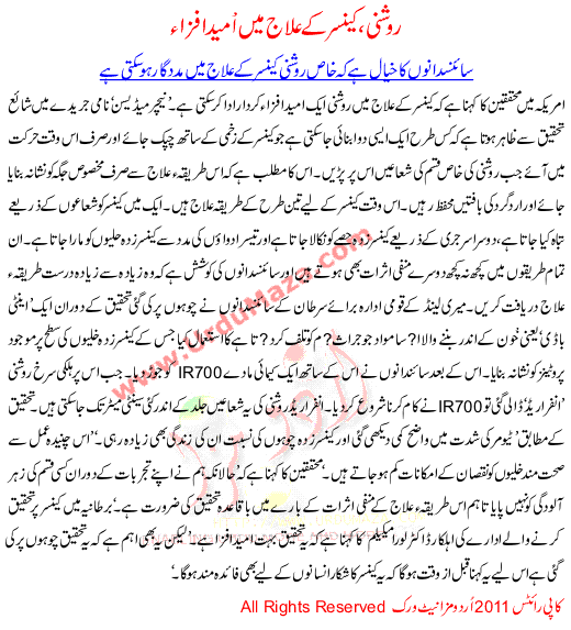 Roshni Camcer K Ilaj Ma Umeed Afza