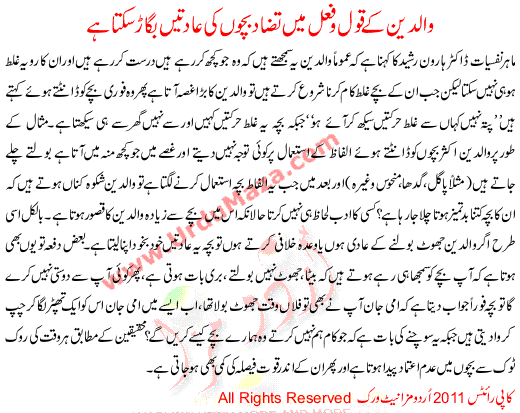 Waldain K Qol O Fail Ma Tazad Bachon Ki Adtain Bigar Skta Ha