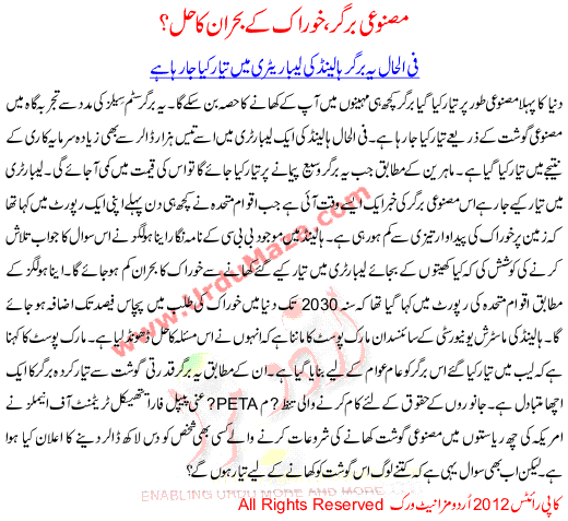 Masnoi Burger Khoorak K Bohraan Ka Hal