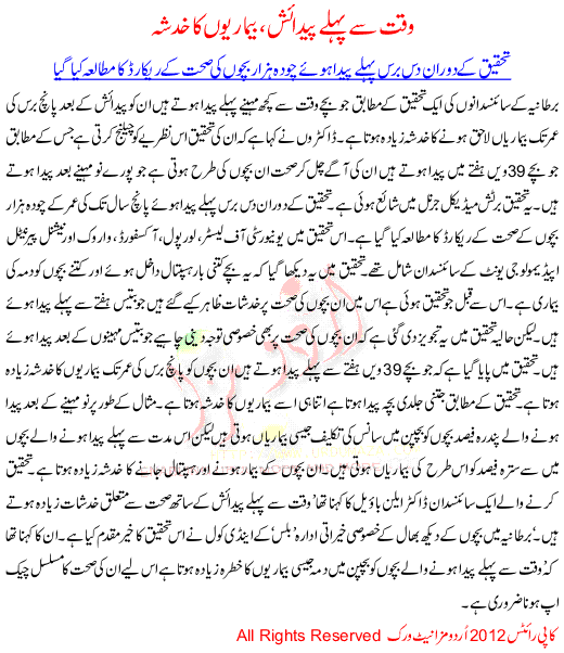 Waqt Sa Pehlay Pedaish Bimarion Ka Khadsha