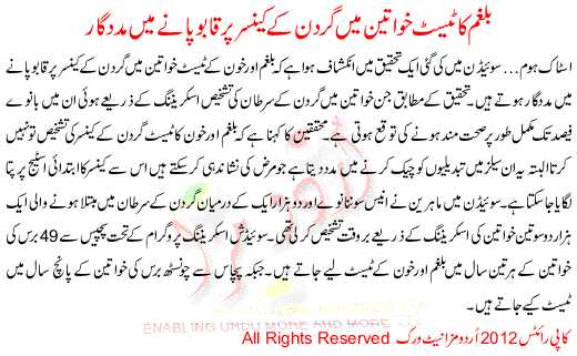 Balgham Ka Test Khwateen Ma Gardan K Cancer Pr Qaboo Panay Ma Madadgar