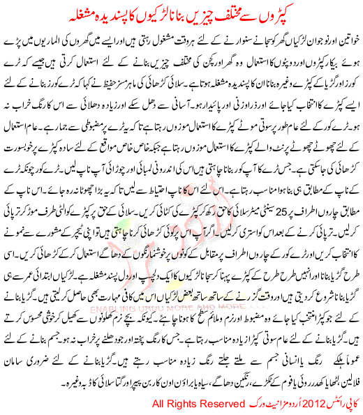 Creating Different Things From Cloth Is A Hobby In Young Girls Of Pakistan