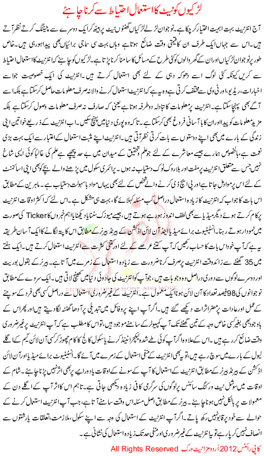 Larkion Ko Internet Ka Istmaal Ahtiat Sa Karna Chahiay
