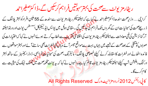 Reforms Yonet Se Sehat Ki Behtar Saholte Frahm Kar Sake Ge Dr Sagheer Ahmed
