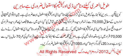 Taweel Ul Umri K Lye Vitamin D Or Calshium Ka Istmaal Zarori Hai